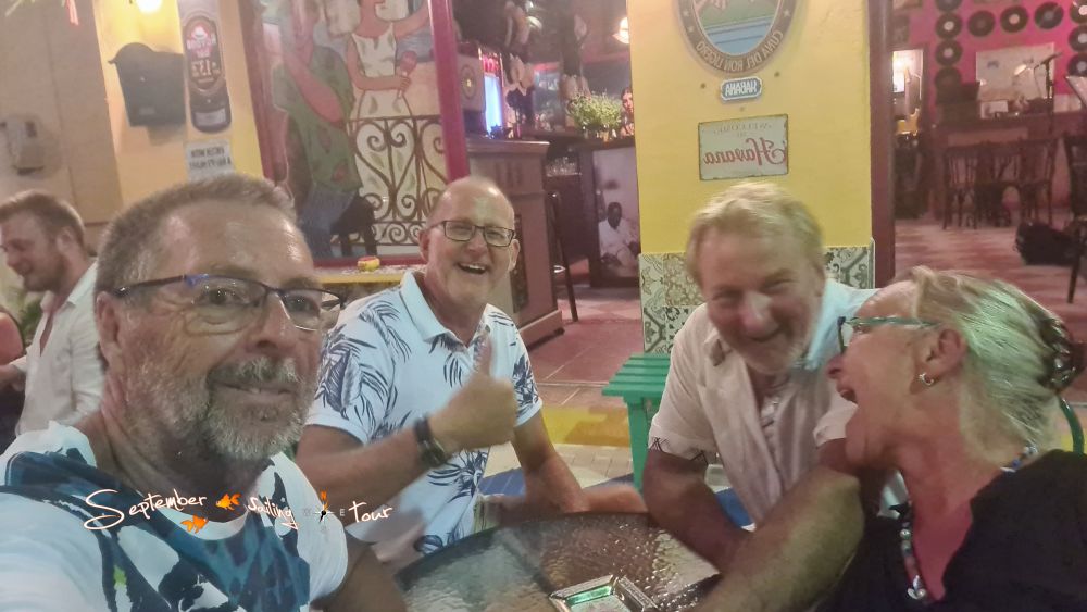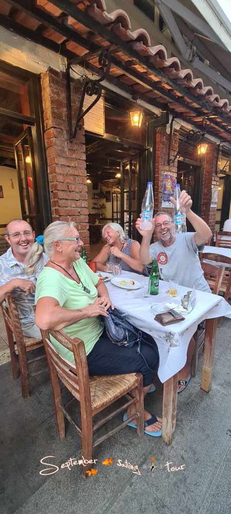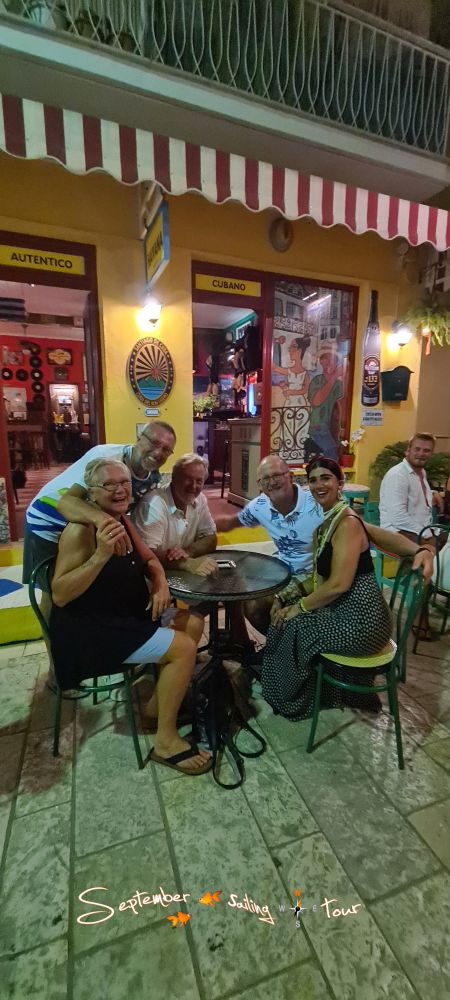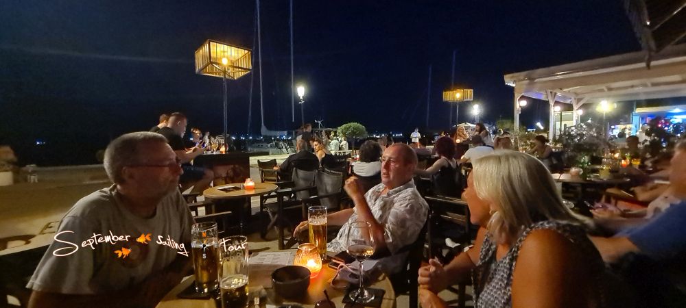 Abends nach getaner Arbeit treffen wir uns noch mal mit Gary & Janet und genießen einen schönen Abend im Crazy Shrimps. Amletzten Tag vor dem Krantermin haben wir unser Schiff fertig für den Krantermin und Treffen uns mit Manfred von der SY DolceVita. Auch Olaf kommt noch und wir fahren gemeinsam nach Lefkas und besuche eine Kubanische Bar. Wir haben gute Laune und viel Spaß.