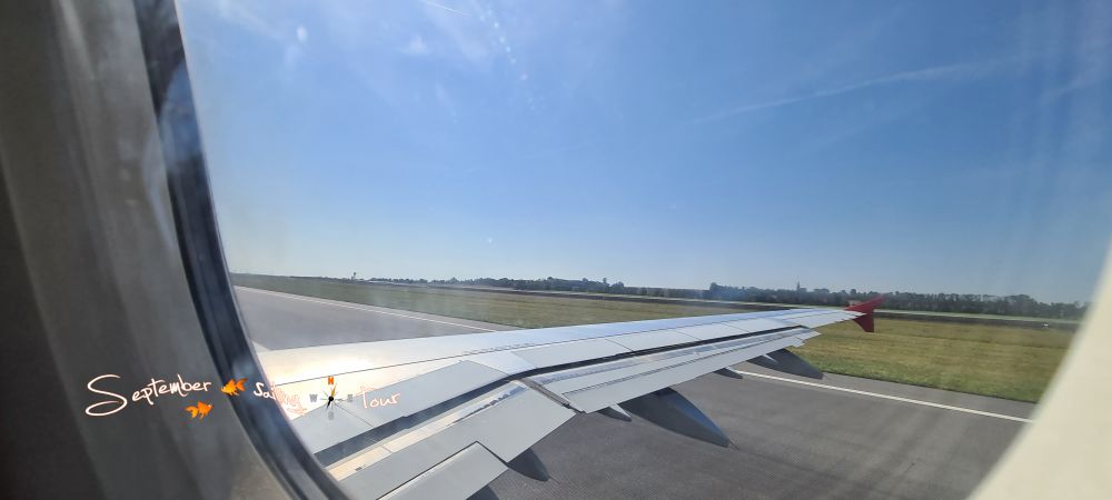 Olaf bringt mich und das Gepäck zum Flughafen und da für Hans im Fahrzeug kein Platz ist, fährt er mit Olafs E-Roller.